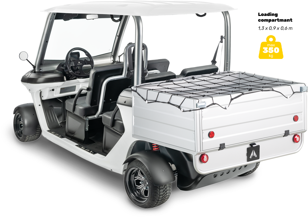 Discover Alba 4SC Cargo: a luxury 4 seater electric cart approved for transporting guests and luggage, designed to offer comfort and convenience on every journey. Thanks to its versatility, this vehicle is perfect for hotels and resorts, as well as urban centers and tourist areas, as it allows passengers and luggage to be transported in complete safety. In addition, its road approval guarantees regulatory compliance and reliability, making this 4 seater electric cart approved for transporting guests and luggage the ideal solution for those seeking premium and sustainable mobility.